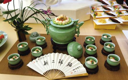 是海寧一道美味名菜。宴球可分“落湯宴球”和“刺毛宴球”兩種,主要原料之一是魚,有白鰱、花鰱、草魚三種,以選用3斤以上的白鰱魚最佳,魚肉細(xì)嫩活泛。另一主要原料是肉,肉要用肥,選料講究。宴球是圓的,蘊(yùn)含了“大團(tuán)圓”的含意。
